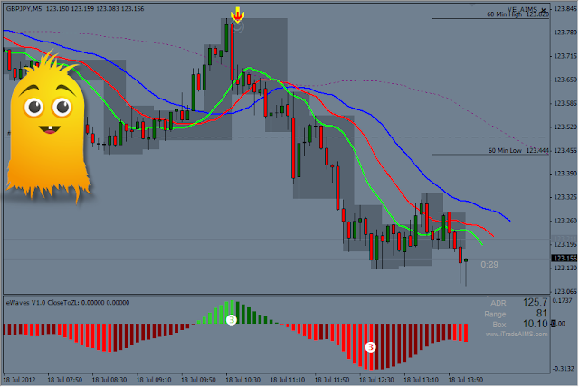 Today was one of those days that you do not want to end. The market was in full swing. It moved nicely, in both directions. AIMS Stress Free Trading System was able to give us signals in either direction. There really were no Rents to be paid to day. The day began with a nice 25 pipper on EUR/USD picture below. There was also a setup on GBP/USD to top up your earnings.
