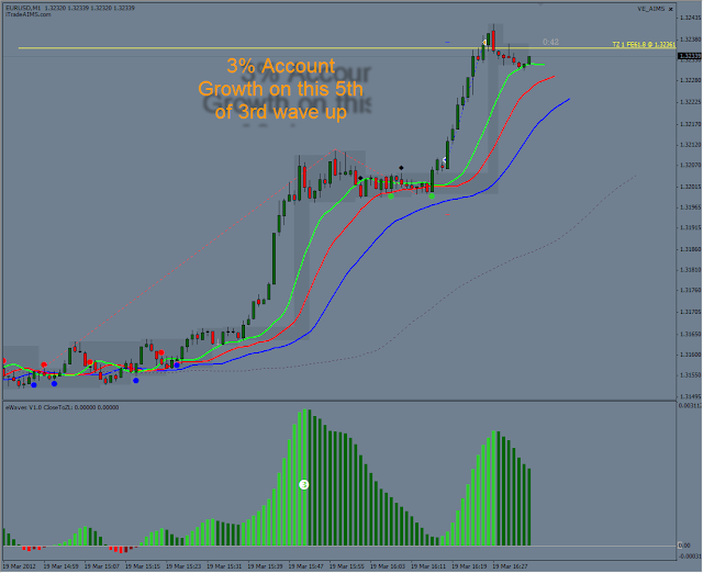 A 3% Account Growth on a Wave 5 Trade on M1. It was Still a Wave 3 on M5 and Wave 3 on H1. A great Example of Wave within wave within wave trading.