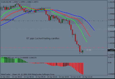 The AIMS level just before we have made an entry would be Setup 1. That is where alligators mouth is closed. However our entry was made into Setup 2. The 2nd Fractal/AIMS Level out of alligators mouth.