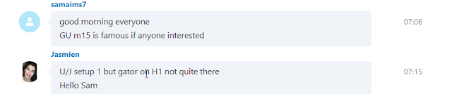 Sam is one of our oldest members and an active participants of our Skype Live Trading Group. Today he called a buy signal on GBP/USD for his favourite setup we call the Famous Setup. Its basically a Setup 1 but it can be spotted on H1 and traded on either the hourly or the 15 minute chart. Its famous because you can actually know about this setup potentially setting up upto 12 hrs in advance. We usually know this might happen tomorrow at the end of today’s’ session. Its one of the Highest Probability Setups you’ll ever find in the forex market. It gives you over 2/3 chance of a winning trade which to me is HUGE. Like all setups this too needs to be learned first before you can really take advantage of. Being an AIMS Member has its advantages, this is one of them.